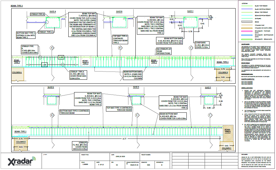 A structural investigation will provide extensive information about any concrete structure and Xradar has the capability to provide estimates of rebar diameter sizes.
