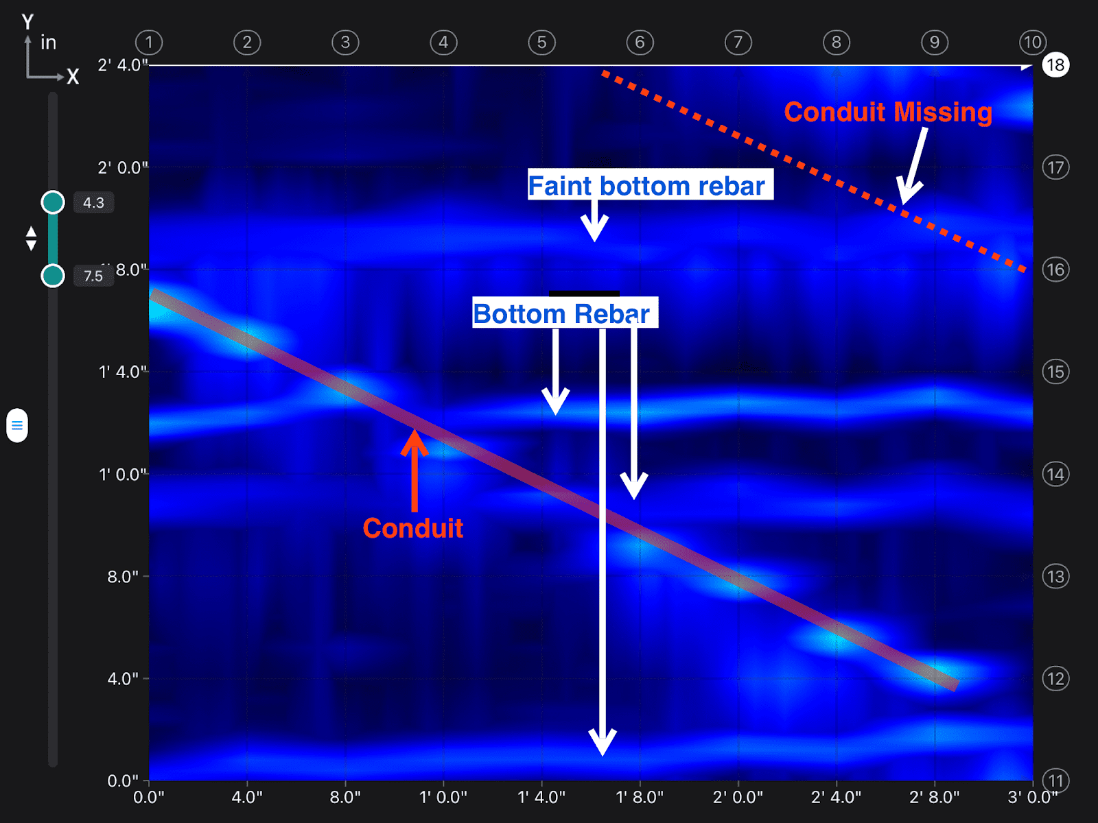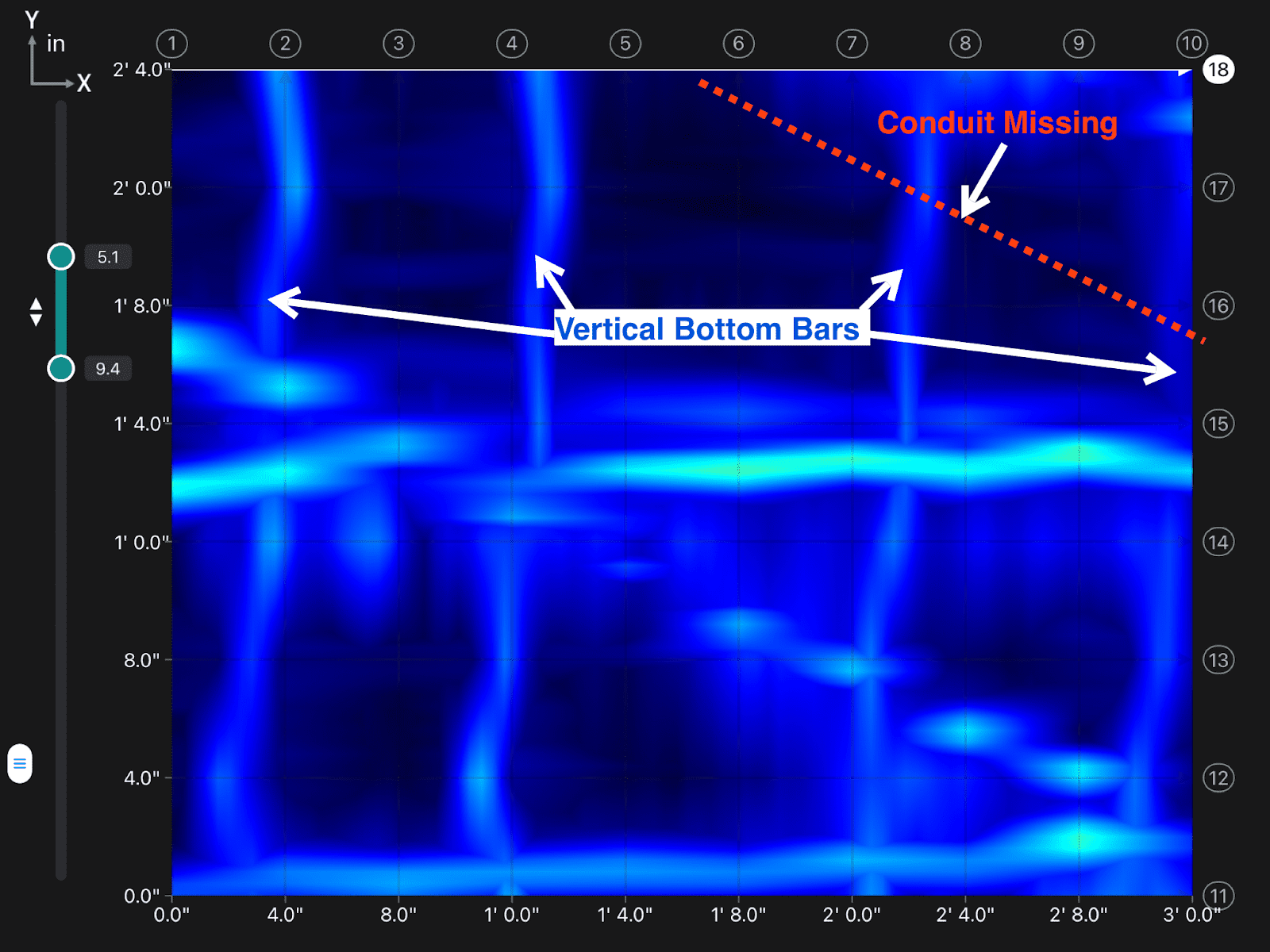 With the flexibility to take data from multiple passes, in multiple locations, at multiple angles and multiple frequencies, an Xradar technician is able to fully understand the slab in order to make informed recommendations on the most complex of scans.