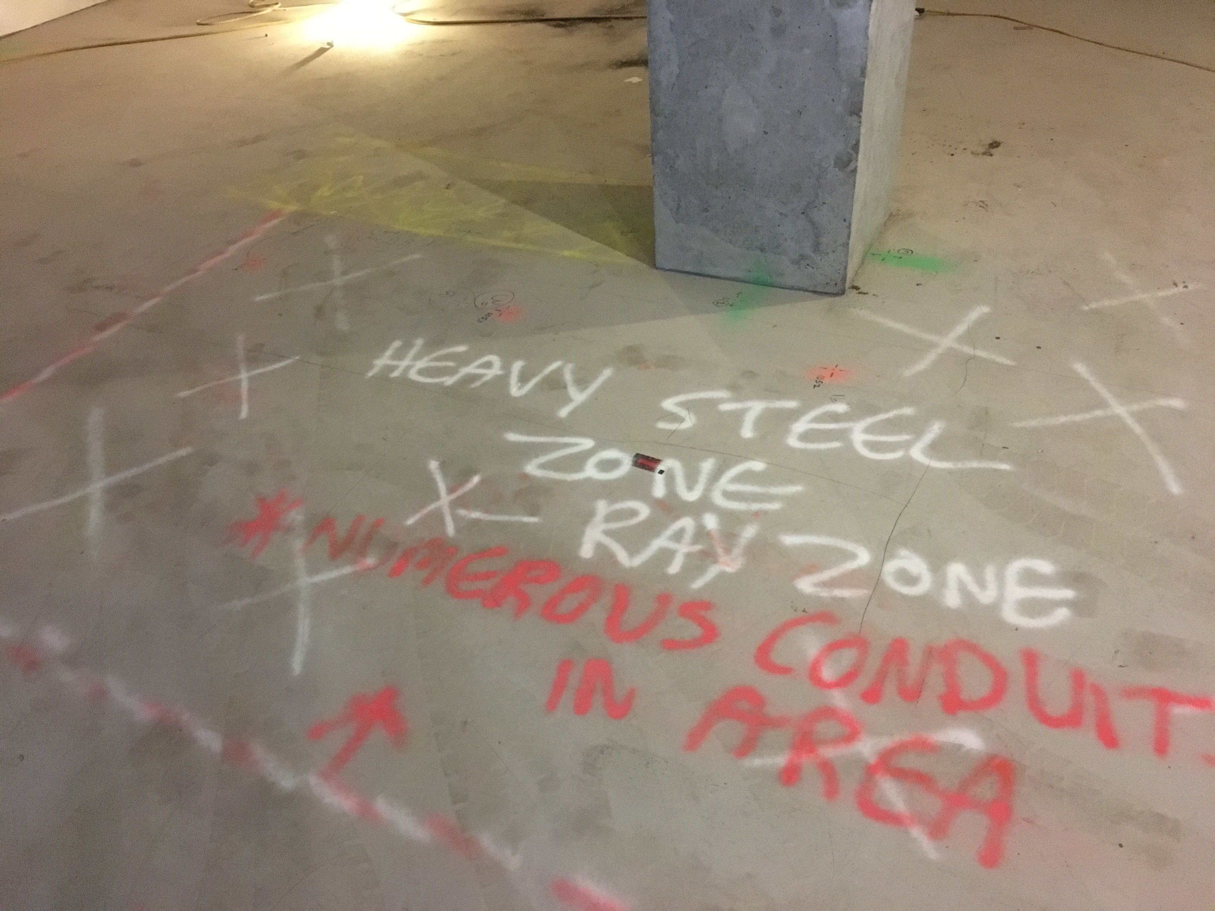 Recently, we received a call from a potential (now a repeat) client. They were told that they had to X-ray the slab because the location in question was too heavy with steel and had multiple conduits making it too complex to scan using regular GPR.