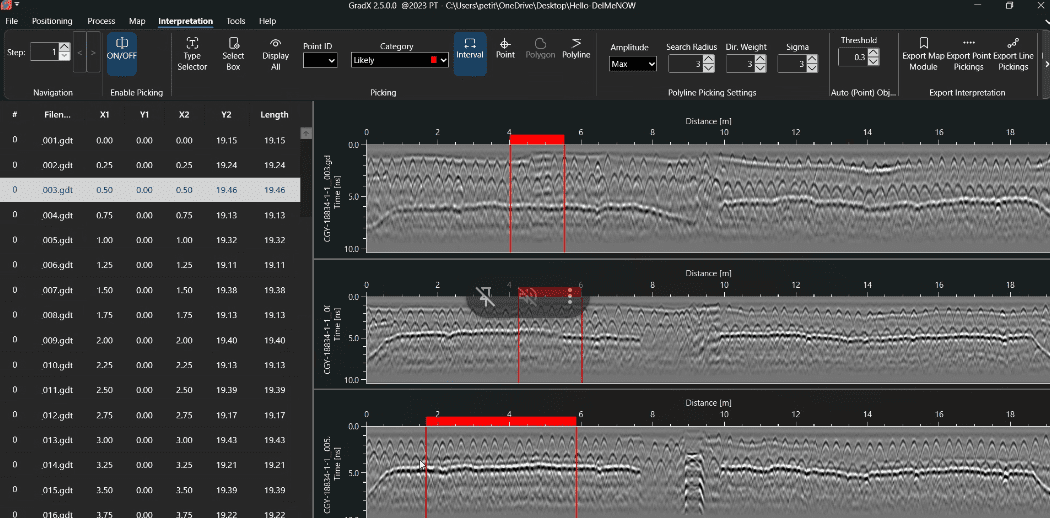 GRAD streamlines the entire workflow of ground penetrating radar data processing. From import to visualization to export, every feature is designed to save time, improve accuracy, and give users full control of their data. Whether you manage small site scans or large survey datasets, GRAD delivers consistency and clarity without reliance on cloud systems or proprietary formats.