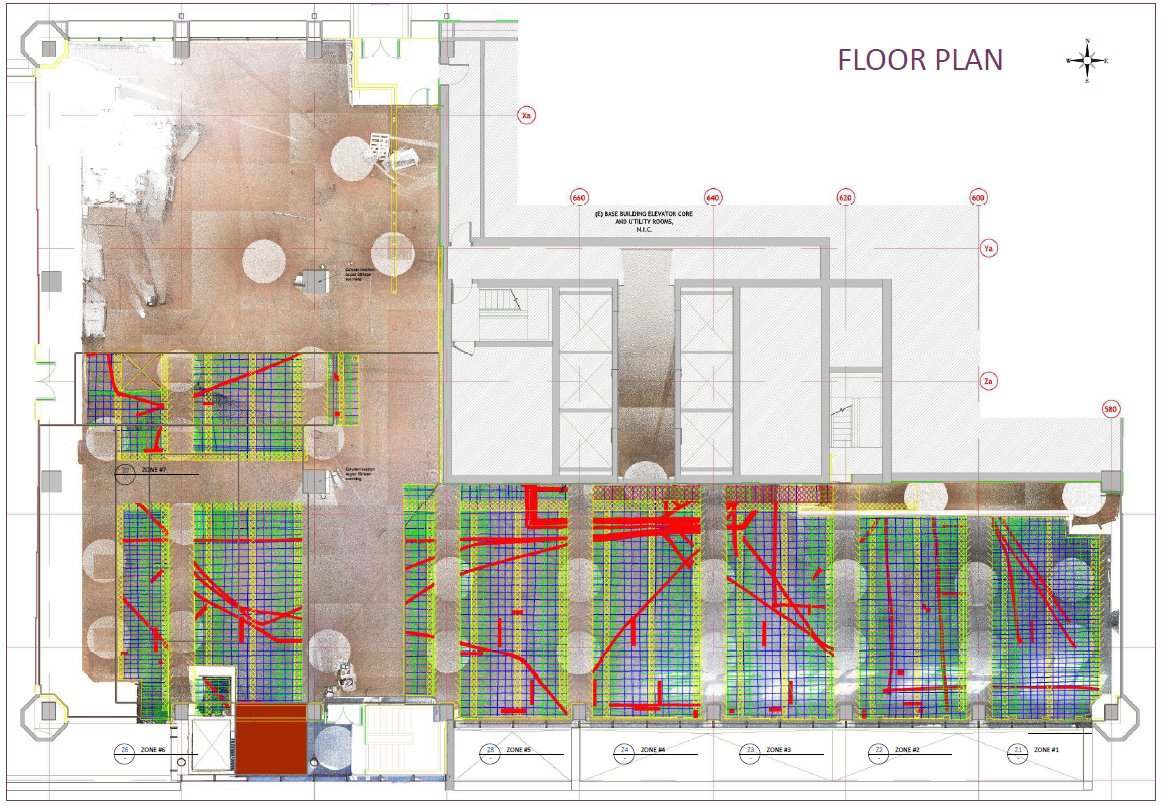 Read about pre-design concrete scanning projects. Xradar scans a space prior to design for conflict-free core hole positioning. Providing architects, designers, and engineers pre-pour layouts of PT, conduits, rebar, and more.
